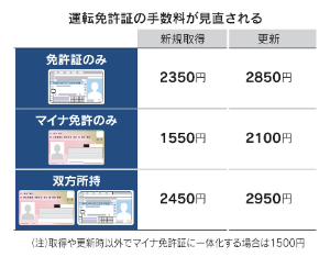 現行の免許証の更新手数料は現在は2500円ですが、マイナ免許証導入後は値上がりして2850円になります。