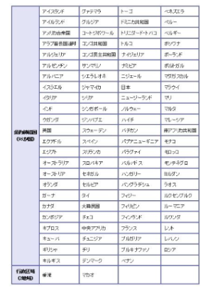 ・アルジェリア・コンゴ民主共和国・フランス・モナコ・アルバニア・ジョージア・ブルガリア・モンテネグロ・キルギス・セルビア・ベルギー・ルワンダ・コートジボワール・ハイチ・ボツワナ・ロシア連邦