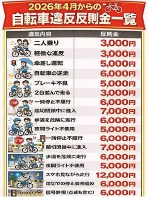 2026年の法改正では自動車だけでなく自転車の交通ルールも大きく変更されます